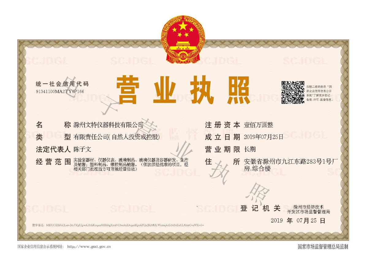 滁州文特儀器科技有限公司 版權(quán)所有 營業(yè)執(zhí)照
